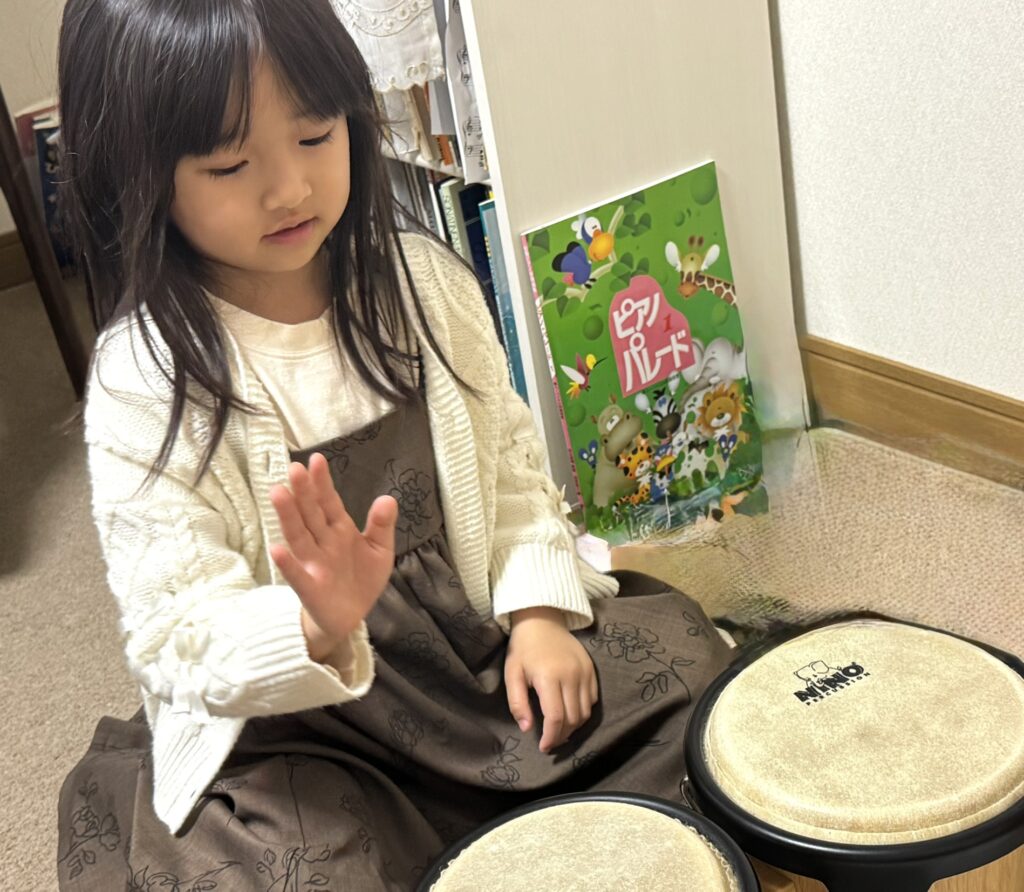 また、ボンゴ(太鼓)を使ったリズム遊びでは、楽しみながら集中して取り組む姿も見られました。